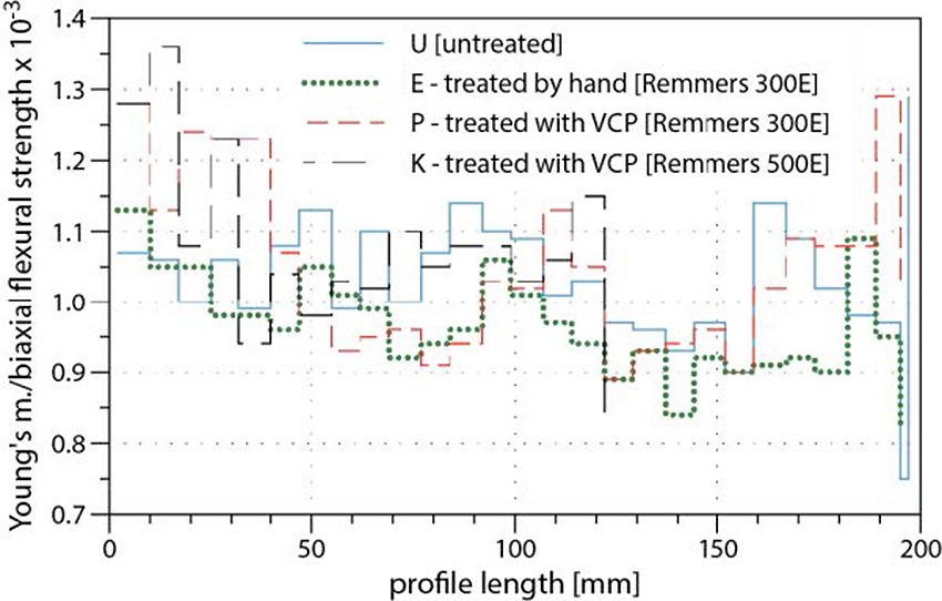 Changes in BFS and YM profiles for all samples after the treatment displayed in Fig. 6 and Fig. 7 reflect the changes in UWV (cf. Fig. 5).