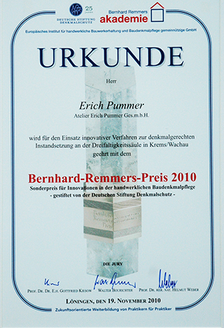 "For his work with the vacuum consolidation (VAC) Erich Pummer was honored a special prize for innovation in monument preservation, donated by the German Foundation for Monument Protection."