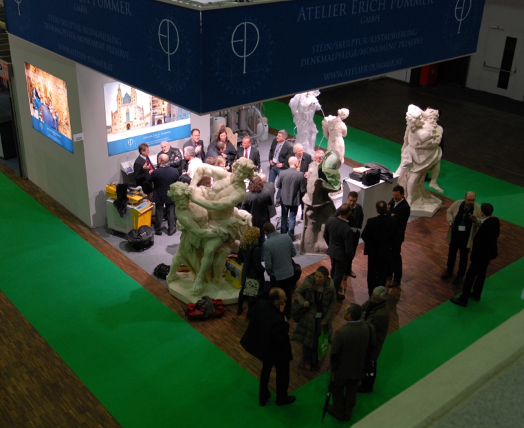 The fair covered a wide range of topics, including care and preservation of monuments, building materials, tools and building equipment, conservation and restoration techniques, issues regarding computer-based archiving, documentation and inventory. The field of architecture was represented, just as the field of garden and cultural landscape conservation and security and building services technology. Some of the highlights were the live 3D survey of a more than 500,000 year-old biface, the stonemason’s living workshop, the baroque garden landscape with 1,500 box trees and the booth with hand blown glass from Murano which is to be designated “World Heritage Site” in the near future.