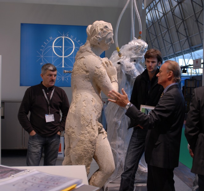 The fair covered a wide range of topics, including care and preservation of monuments, building materials, tools and building equipment, conservation and restoration techniques, issues regarding computer-based archiving, documentation and inventory. The field of architecture was represented, just as the field of garden and cultural landscape conservation and security and building services technology. Some of the highlights were the live 3D survey of a more than 500,000 year-old biface, the stonemason’s living workshop, the baroque garden landscape with 1,500 box trees and the booth with hand blown glass from Murano which is to be designated “World Heritage Site” in the near future.