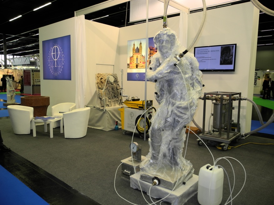 Managing Director Erich Pummer, Bmstr DI (FH) DI Ewald Zederbauer, Ernst Wandl and Mag. Michael Soska were available for questions and presented live the patented Vacuum-Consolidation-Method (VAC) and the natural stone cleaning using laser technology. Likewise, positive and negative of various impressions and an original, already restored Gothic baptismal font were exposed.