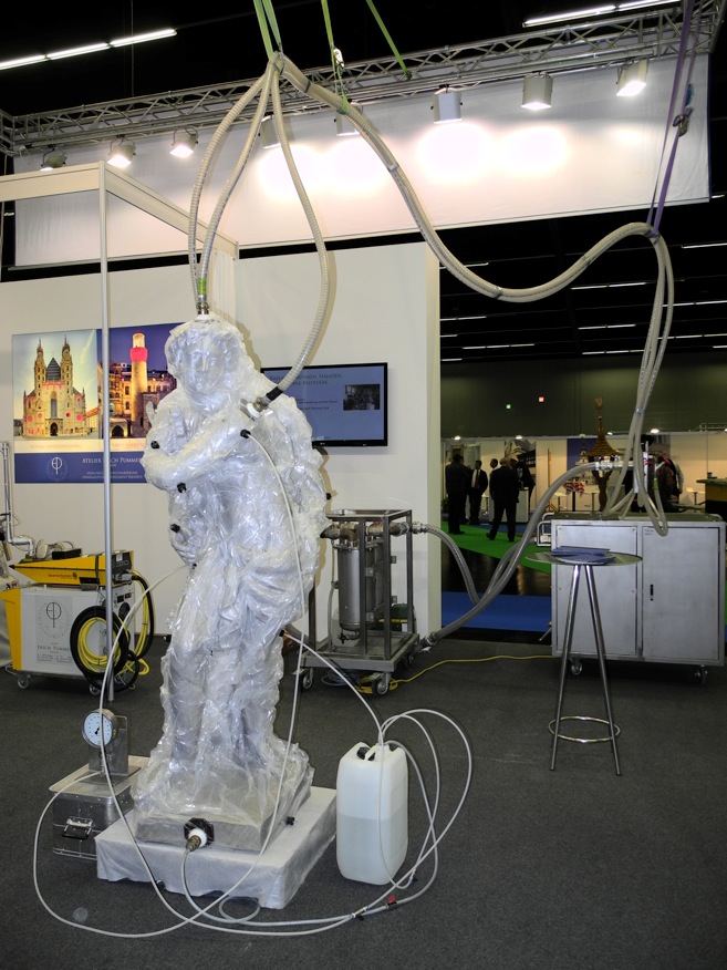 Managing Director Erich Pummer, Bmstr DI (FH) DI Ewald Zederbauer, Ernst Wandl and Mag. Michael Soska were available for questions and presented live the patented Vacuum-Consolidation-Method (VAC) and the natural stone cleaning using laser technology. Likewise, positive and negative of various impressions and an original, already restored Gothic baptismal font were exposed.