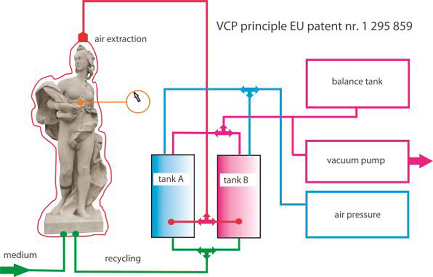 The equipment is easily moveable and offers the possibility to conserve objects in any position or situation, on buildings or freestanding (Fig. 1 and Fig. 2). The principle of VCP is shown in Fig. 2.