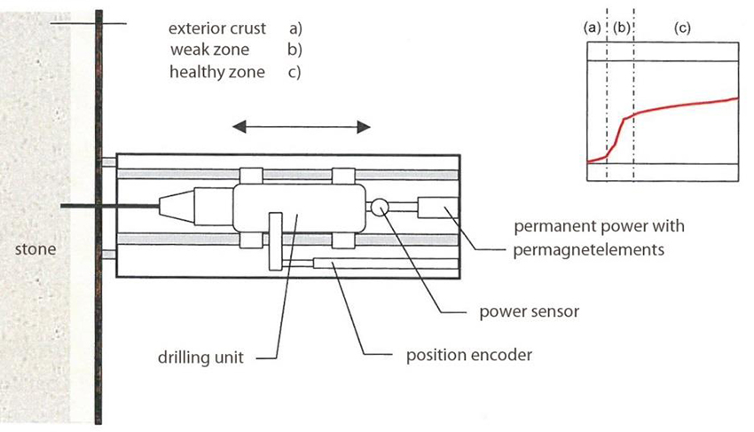 The following figures (Fig. 6 and Fig. 7) show the working principle of the device used for measuring the drilling resistance prior and after the treatment by VCP.