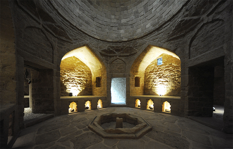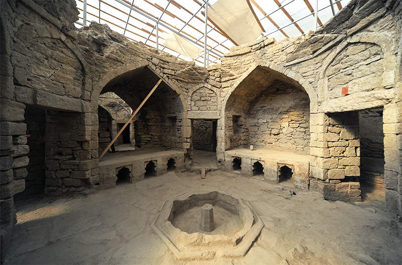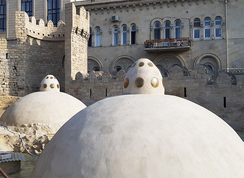 Historic Old Town "Icheri Sheher", Oriental bathhouse around 17th century (Silk Route), underground facility with around 25 rooms on three floors, originally with towering cupolas and ventilation shafts, total area approx. 300 m²Excavation, conservation and static renovation in situ, stabilisation and reconstruction of the vaults and cupolas made with historical building technology, sealing, protection canopy