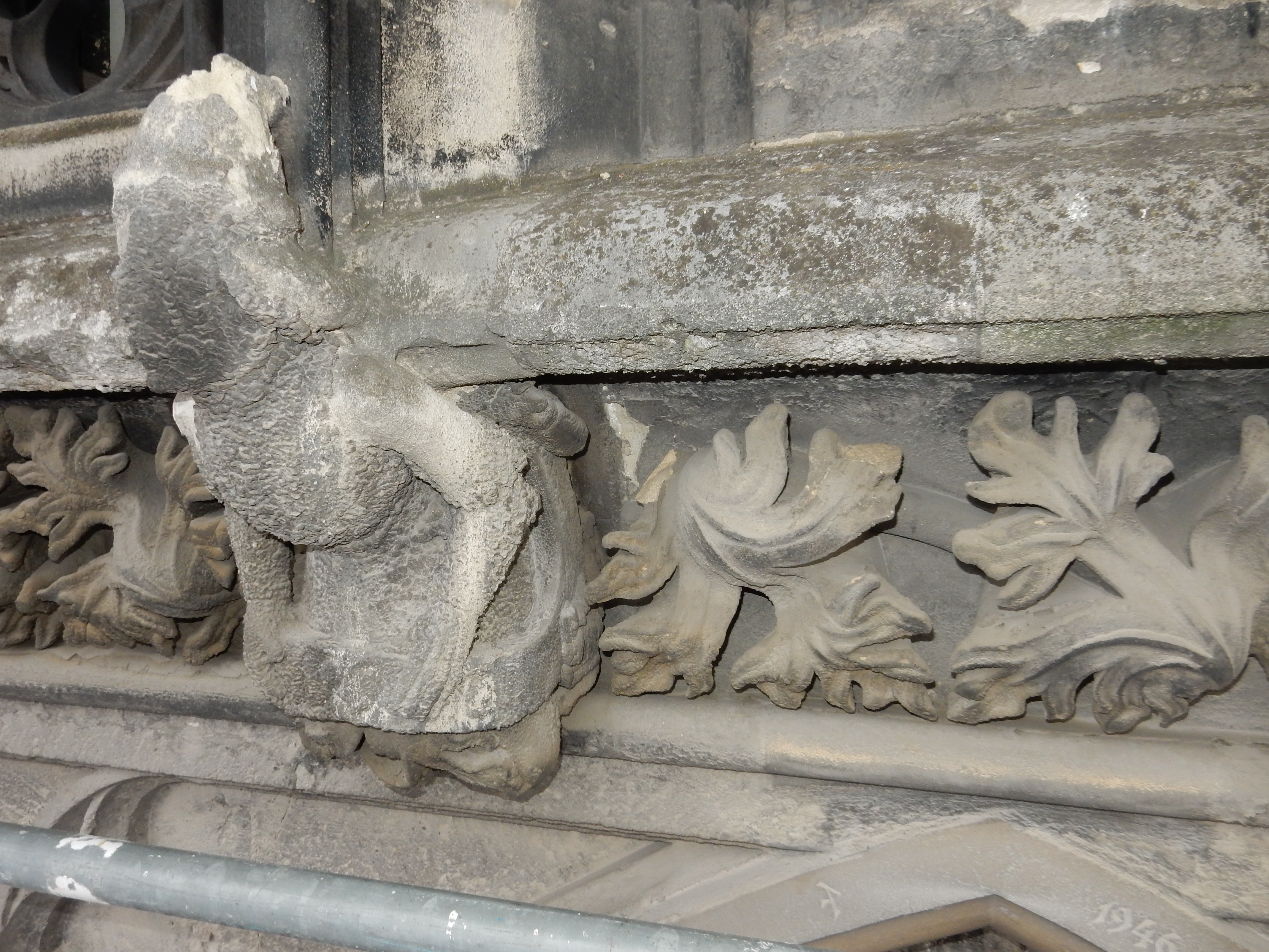 West chapel lower part ca. 1360 to 1395, upper part ca. 1400 to 1440, Side of the nave completed in 1440, Lobby of the bishop's gate around 1510, decorative pediment 1855/56 in imitation of the Friedrich pediment on the south side, restored in 1881Laser cleaning of all sculptural and ornamental parts, restoration and preservation of all architectural elements and surfaces