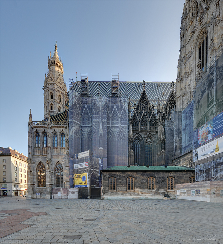 Eligius chapel around 1360 - 1400 and Bartholomew chapel until 1437, Singertor 1440 - 1450, restored 1894 - 1896, Friedrich pediment 1430 - 1440, restored 1982ff and 1928, decoration of other pediments 1853/1854, restored 1882ffLaser cleaning of all sculptural and ornamental parts, VAC of the St. Stephen´s statue, restoration and preservation of all architectural elements and surfaces