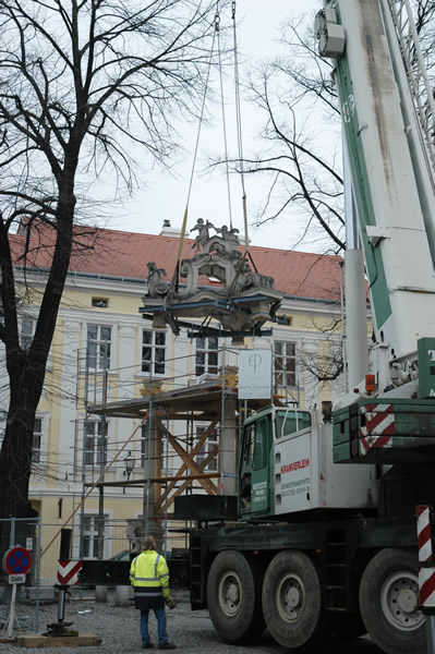 Baroque baldachin with sculptural decoration of limestone, height of 10mTotal deconstruction, new foundations, reconstruction, restoration