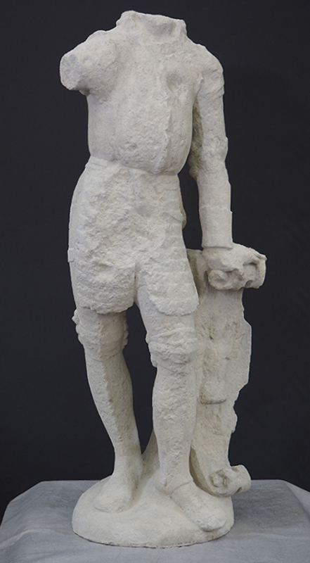 Sculpture made of limestone from Zogelsdorf, column and steps construction made of regional conglomerate rock, 1590Whole object, steps construction, pedestal with column shaft and capital, Roland sculpture