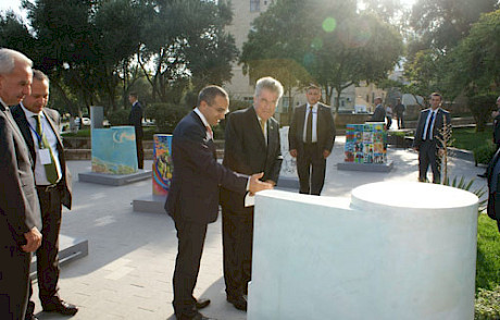 The Austrian President Heinz Fischer visited the hugh conservation project „Maiden Tower“ (Qiz Qalasi”) of Atelier Erich Pummer, the conservation company from Rossatz, during his official business mission in Azerbaijan.
