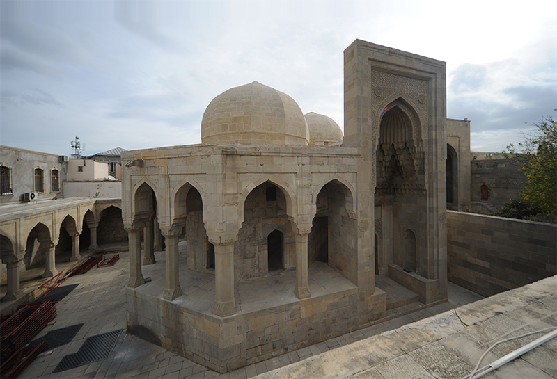 Shirwan Shah family tomb and "Divanhana" Court Square, the Palace, 15th century.Total renovation and preservation of the domes, flat roofs and portals, including the valuable Arabic inscriptions and rich ornamentation, everything made of "Absheron" shell limestone
