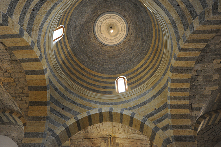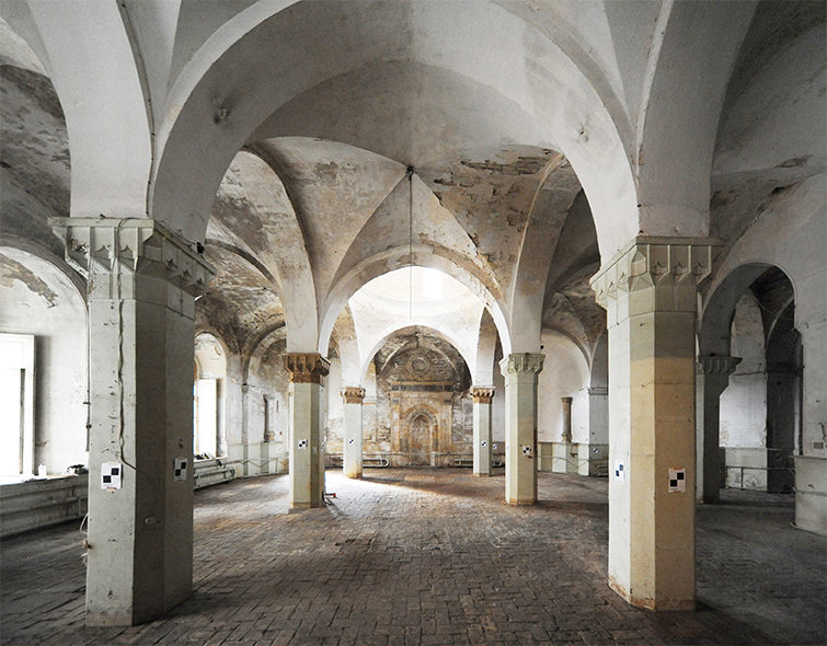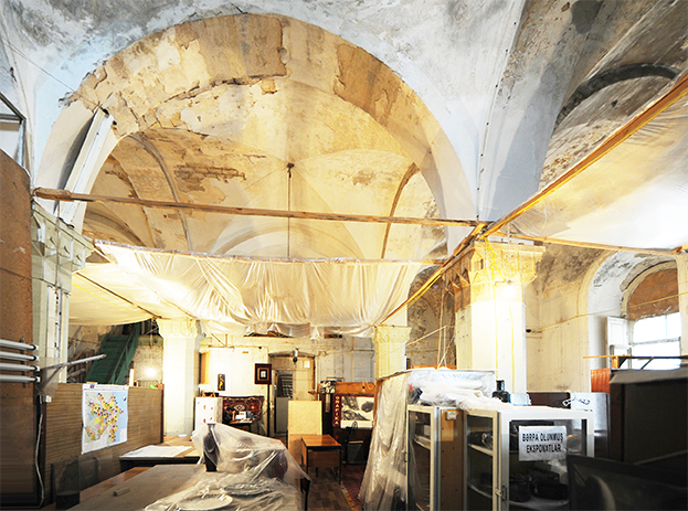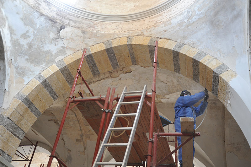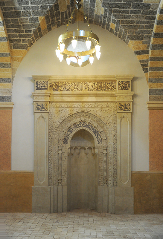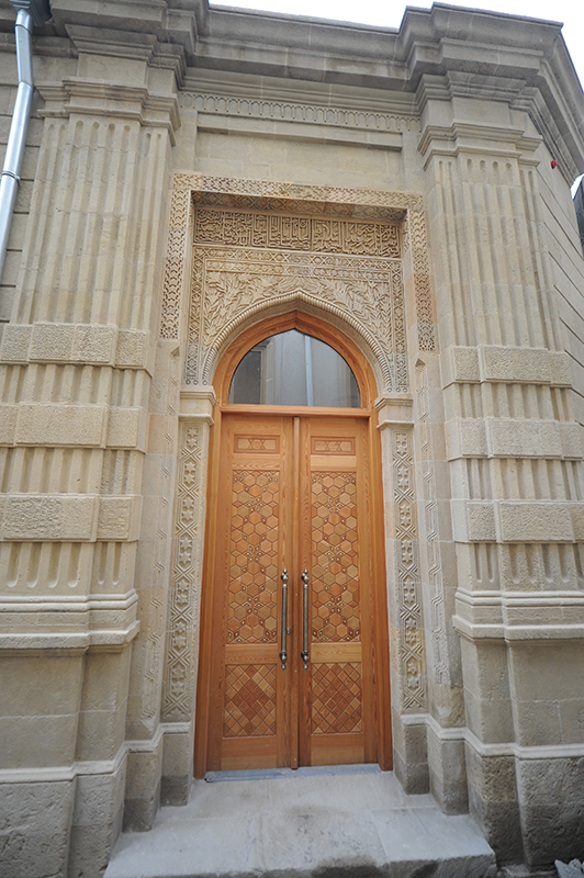 South facade with minarets, prayer room, mihrab prayer niche, 19th centuryTotal renovation, GU order: Roof renovation, facade restoration in Absheron limestone, complete interior renovation, interior, color design, sanitary room, electrical systems, heating, lighting technique