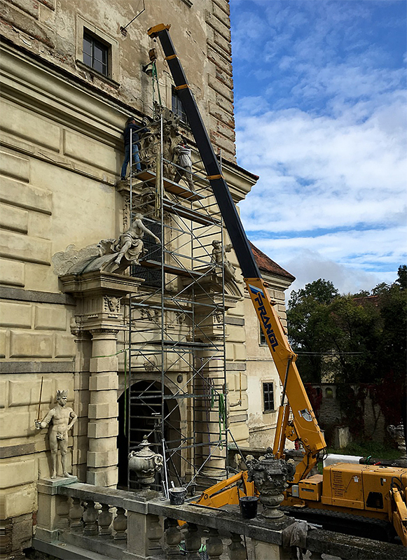 Renaissance family crest made of limestone from ZogelsdorfDismounting, VAC by order of University of Applied Arts Vienna (conservation and restoration)