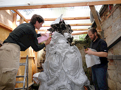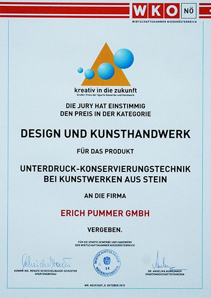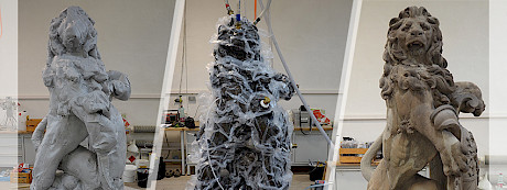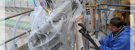 The patented "vacuum-circling strengthening process" (Europa Patent Erich Pummer GmbH no. 1295859) allows monuments, stone sculptures, facades and other free-standing and weathered objects to be preserved either in-situ or in the workshop.