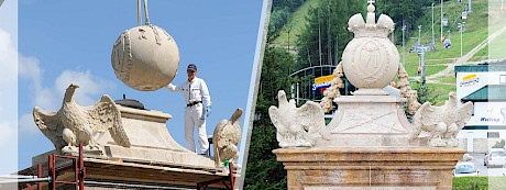 | Baroque pediment group guest wing North and West 4 sculptures, 4 vases, 3 ??Puttis | Altenburg Monastery, Lower Austria | Monastery of Altenburg | 2005 - 2006 | |